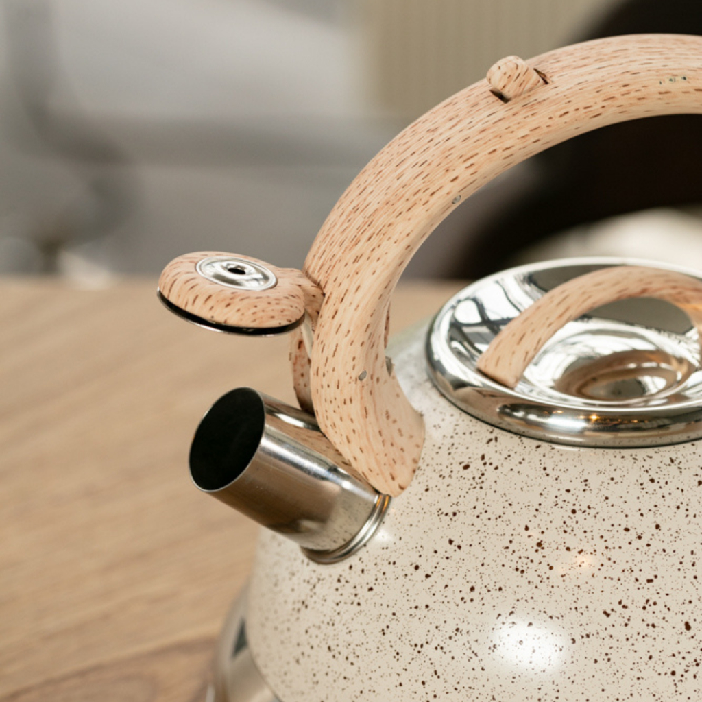 Ela apita automaticamente quando a água entra em ebulição.